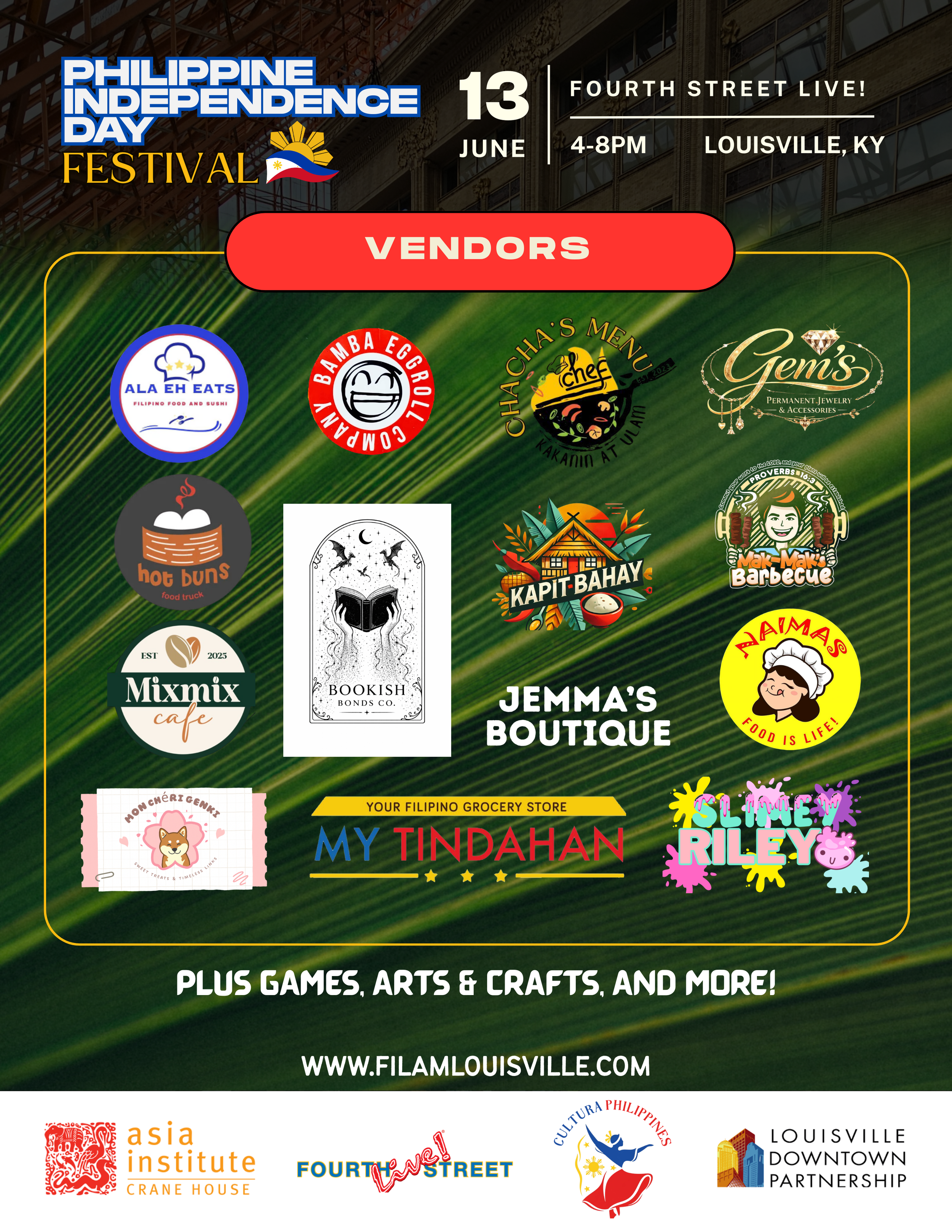 The second annual Philippine Independence Day Festival is underway! This FREE event will take place on June 13, 2026 from 4-8pm EST in downtown Louisville’s Fourth Street Live!
